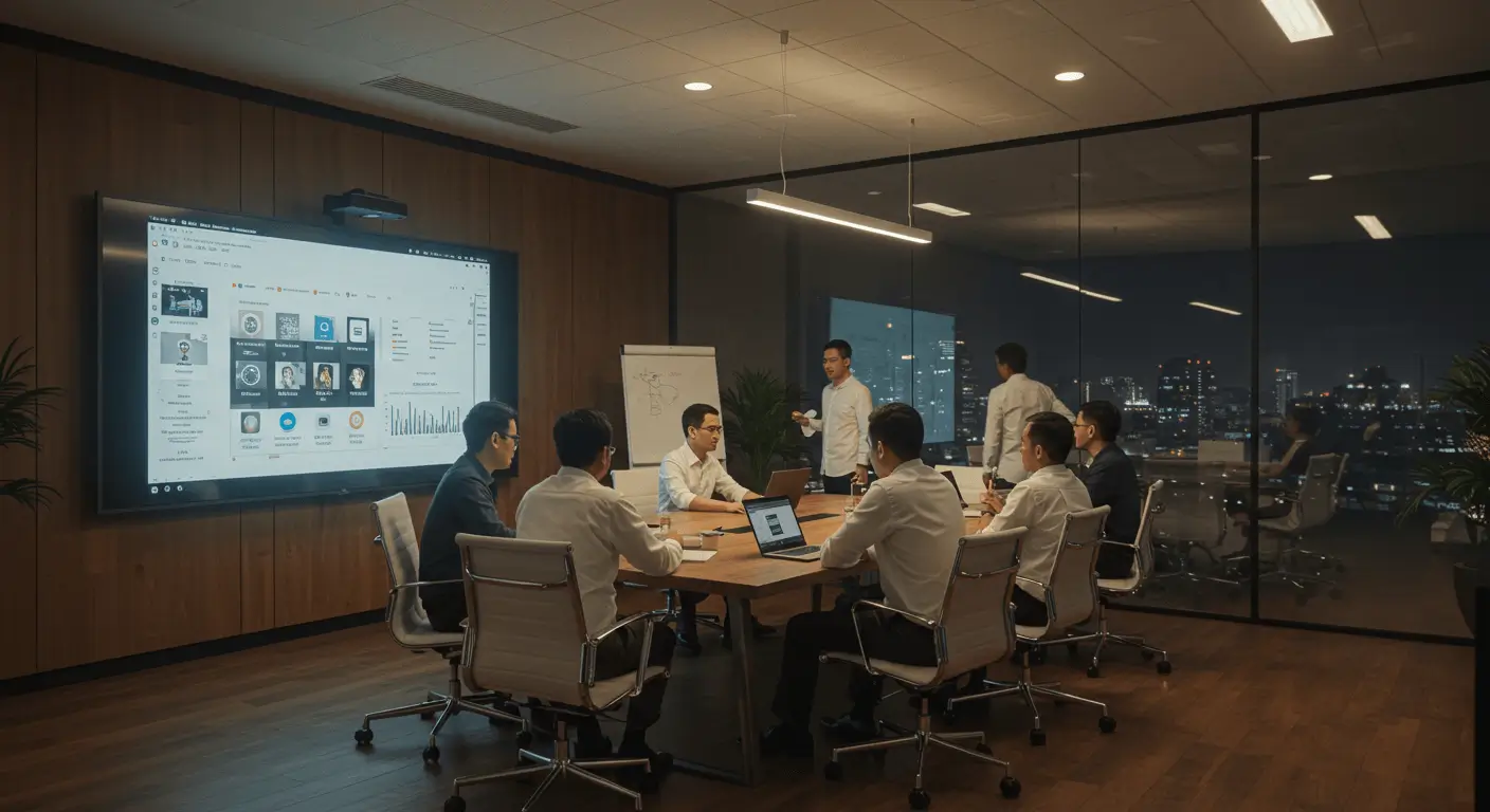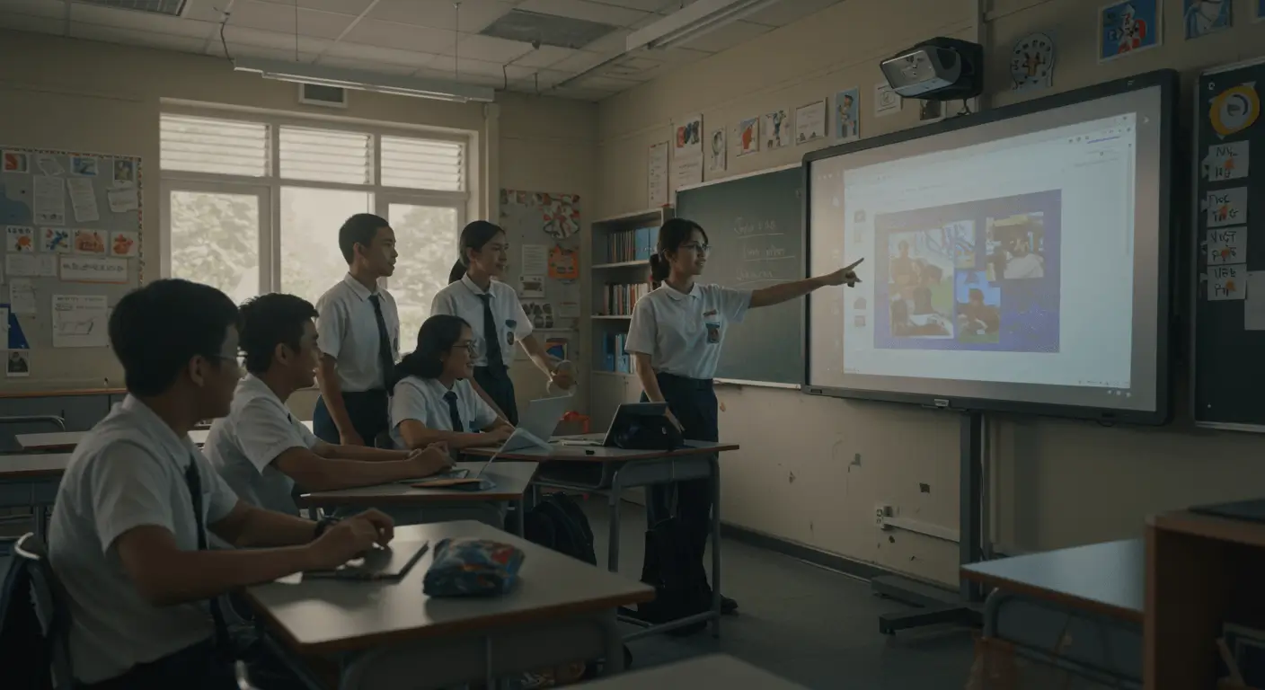 Layar digital berukuran besar yang memiliki fitur sentuh (touchscreen), seperti tablet raksasa, yang digunakan untuk menulis, menggambar, memutar video, dan berinteraksi secara langsung.